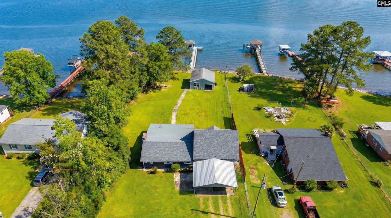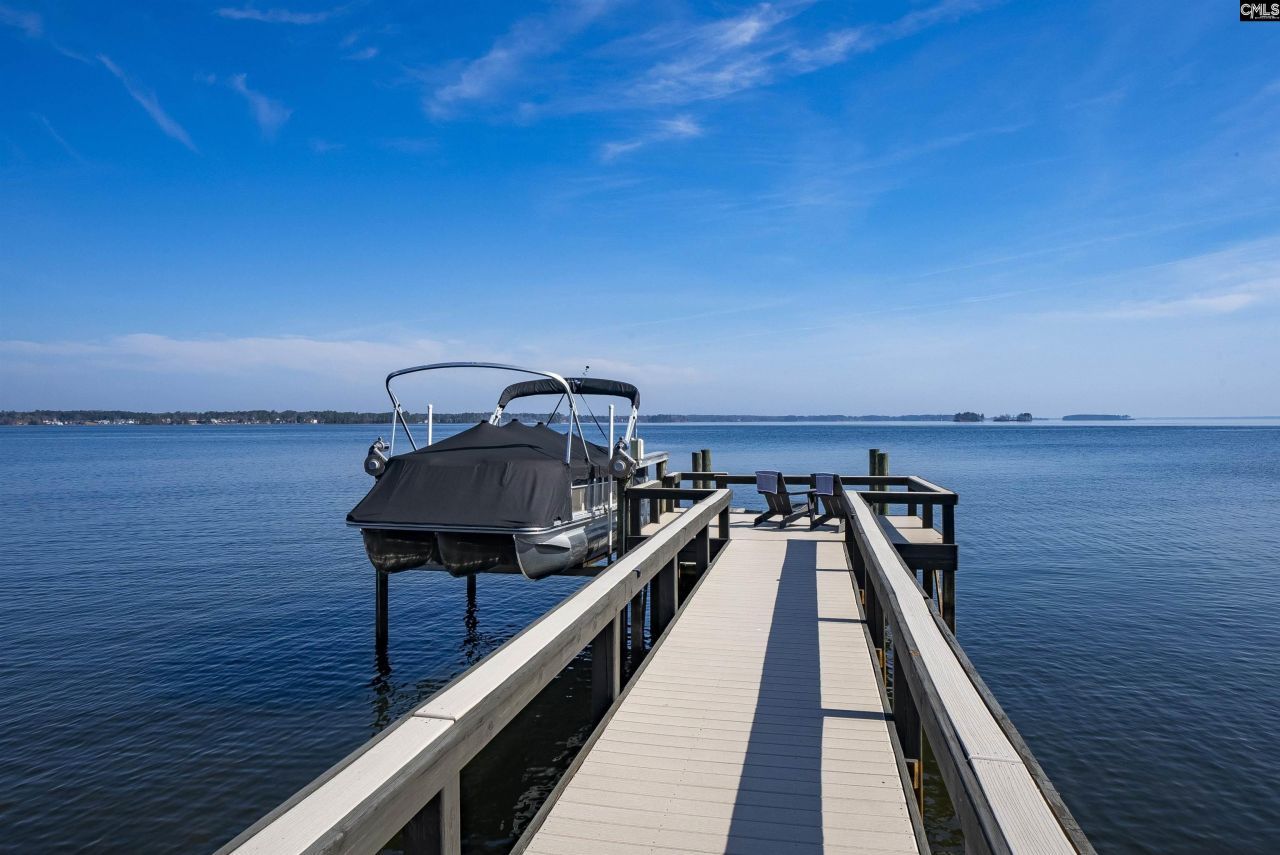 Wake up to spectacular sunrise views over Lake Murray's big water from this exceptional lakefront retreat. Perfectly positioned along a coveted stretch of shoreline, this property offers 107 feet of east-facing waterfront with sweeping panoramic views and peaceful mornings that feel like a private getaway every day.Situated on a private .81-acre unrestricted lot, the property offers a rare combination of space, privacy, and flexibility rarely found on Lake Murray. Ownership includes the valuable 360 line, providing additional shoreline control and enhanced waterfront access. A beautifully constructed stone retaining wall frames the shoreline while preserving wide-open water views.Inside, the home features a comfortable split floor plan with three bedrooms and three full baths, along with a versatile bonus room ideal for a home office, fitness space, or additional guest accommodations. The primary suite offers a relaxing retreat with walk-in closet, double vanities, and private bath. The kitchen is thoughtfully designed with Corian countertops and soft-close cabinetry, creating an inviting space for everyday living and entertaining.One of the most remarkable features of the property is the separate waterfront entertaining pavilion. Originally a boathouse, it has been transformed into a stunning lakeside gathering space just steps from the water. The pavilion includes a fully equipped second kitchen with double oven, induction cooktop, ice maker, and half bath, along with a mirrored glass garage door that opens directly toward the lake-creating a seamless indoor-outdoor entertaining experience.Outdoor living is equally impressive. The private dock offers approximately 110 feet of dock space, a Golden Boat Lift remote system, generous lounging areas, and Lumberock composite decking with a 50-year limited warranty. Additional features include lakeside steps and two kayaks that convey with the property.Additional highlights include a solar-powered gated entrance, fully fenced yard, two powered storage buildings, 30-amp RV hookup, high-speed internet availability, reverse osmosis system with whole-house filtration. Assumable VA loan at 2.25 for qualified buyers Discla