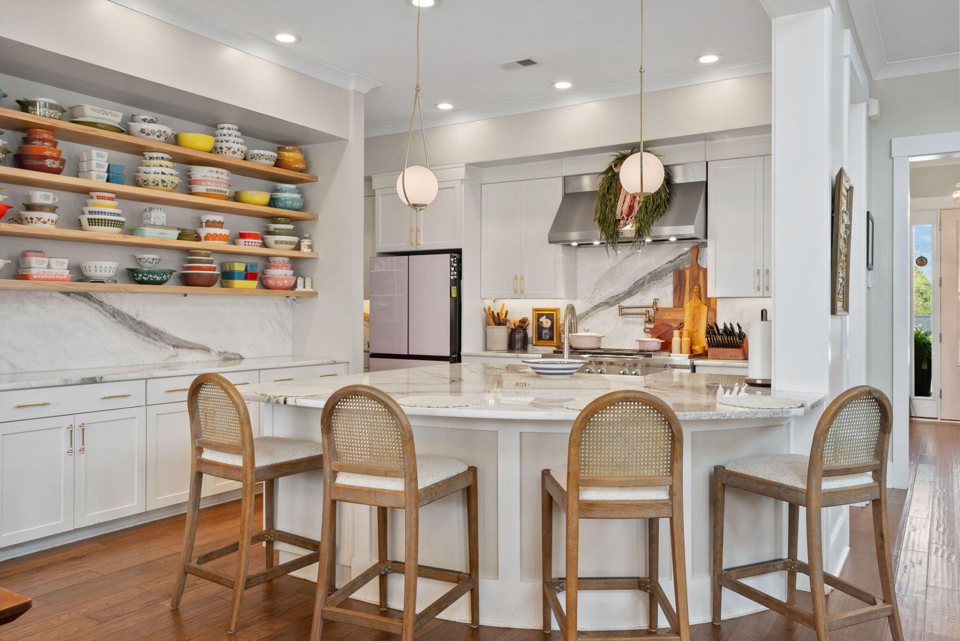 Welcome to 146 Callibluff Drive, where custom design meets real-life functionality in one of the most sought-after sections of Carnes Crossroads.This semi-custom Ashton Woods home offers 5 bedrooms, 4.5 bathrooms, and just under 3,300 square feet of thoughtfully designed space, but what truly sets it apart are the upgrades you feel the second you walk in.From the moment you enter, you're greeted by a light-filled, two-story living space with a vaulted feel, fresh modern paint, updated lighting, and a clean, open stairway that makes the entire home feel bright and airy. The main level features a moody, designer-inspired office, a private guest suite with its own ensuite bath, and a fully customized mudroom complete with woodworking, wallpaper,and functional storage that actually keeps life organized.The kitchen is truly the heart of this home, and it shows. Completely elevated with marble countertops that extend seamlessly up the backsplash, hidden outlets for a clean, uninterrupted look, WiFi-enabled under-cabinet lighting, floating shelves, updated lighting, fresh paint, and a custom walk-in pantry, every detail was intentionally designed. High-end appliances including a 48 KitchenAid gas range, double ovens, silent dishwasher, pot filler, and built-in microwave make this space as functional as it is beautiful.Upstairs, the primary suite feels like its own retreat with a private balcony, spa-like bathroom, and a spacious custom closet system. You'll also find three additional bedrooms, two connected by a Jack-and-Jill bath and one with its own ensuite, as well as a built-in library that adds both charm and function. The laundry room has been upgraded with custom cabinetry and a deep soaking sink, making everyday tasks just a little easier.And one of the biggest upgrades, no carpet anywhere. All bedrooms now feature LVP flooring, giving you durability, easy maintenance, and a cohesive, modern look throughout the entire home.Additional features include custom closets throughout, updated lighting across the home, and a detached two-car garage with a mini-split system, perfect for a gym, workshop, or climate-controlled storage. The garage attic has also been fully floored, creating full-length, usable storage space in the attic you don't typically find in homes like this.You'll also enjoy built-in Sonos surround sound in both the living room and screened-in porch, plus an advanced air quality system designed to improve air cleanliness and overall comfort.This isn't just a home, it's one that's been thoughtfully upgraded, well-designed, and ready to be lived in without a single project on your to-do list.