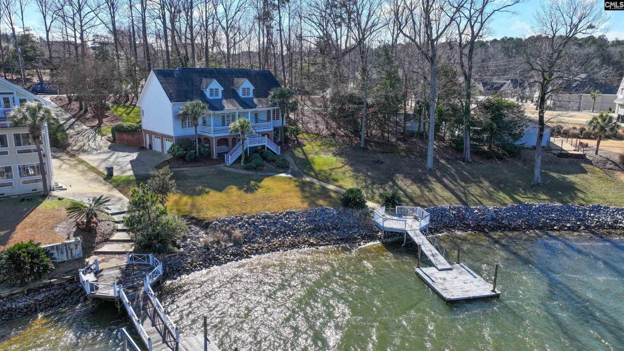 Rare Lake Murray waterfront opportunity with over 200 feet of shoreline and peaceful sunset views on nearly 0.7 acres, all just minutes from downtown Columbia. This one-owner custom home has been thoughtfully designed, recently painted throughout, and well maintained, offering the perfect opportunity to personalize and refresh the space to suit your vision. With three levels of living space, multiple porches overlooking the water, and exceptional storage throughout the home, there are endless places to relax, gather with friends, and enjoy the beauty of lakefront living. The main level features hardwood floors, custom millwork, built-ins, and a spacious great room with fireplace and lake views. A formal dining room is ideal for hosting, while a dedicated home office provides a quiet place to work or study. The main-level primary suite serves as a private retreat and includes its own fireplace, tray ceiling, dual walk-in closets, dual vanities, a whirlpool tub, and a separate step-in shower. Upstairs you will find two additional bedrooms, a full bath, and generous walk-in attic storage. The walkout lower level adds flexible living space with a recreation room that opens to a covered porch, an additional bedroom with a full bath, and abundant storage ideal for lake equipment, outdoor gear, and seasonal items. Outside, the nearly 0.7-acre lot with more than 200 feet of shoreline offers exceptional privacy and space to enjoy the water. A private dock and the rare advantage of no HOA provide added flexibility for lake living. Ideally located about 5 minutes from the Lake Murray Dam, approximately 10 minutes to Harbison shopping and dining, about 10 minutes to I-26, and roughly 25 minutes to downtown Columbia, this location offers the serenity of waterfront living with excellent everyday convenience. Spend your mornings on the porch, afternoons on the water, and evenings watching the sun set over Lake Murray's 50,000 acres of year-round recreation. Bring your vision and make this special waterfront property your own just in time for summer on the lake. Disclaimer: CMLS has not reviewed and, therefore, does not endorse vendors who may appear in listings.