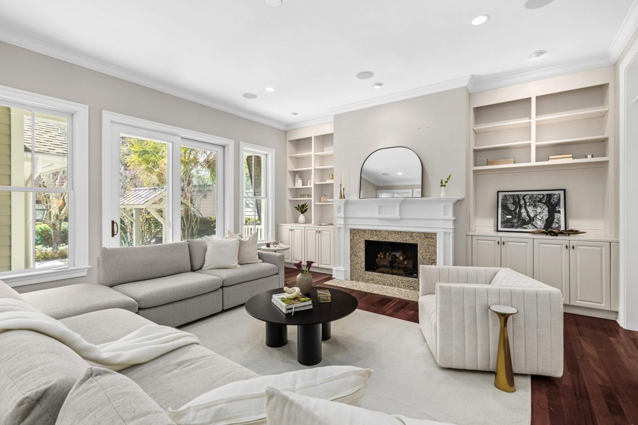 Tucked within the heart of Daniel Island Park, just moments from the Daniel Island Club's award winning golf courses, tennis, pickleball, and fitness amenities, this beautifully updated custom home blends timeless Southern charm with thoughtful modern improvements. Originally built by Cook Bonner, the home offers a gracious, light filled floor plan designed for both everyday living and effortless entertaining.The main level flows beautifully from the welcoming foyer to the formal dining room, enhanced with specialty wall finishes, and into the open family room and breakfast area. The kitchen was renovated in 2021 and serves as the heart of the home, featuring updated finishes and a fresh aesthetic that complements the home's classic architecture.A cozy breakast area is steps away and offers a wall of windows to take in the morning light. Just beyond, a custom built bar by Butch Pritchard creates a wonderful gathering space, complete with marble countertops, antiqued mirror backsplash, wine storage, and an ice machine, an elegant and functional addition for entertaining. Hosting dinner parties in the formal dining room is a breeze with this setup.The living room is airy and spacious. Anchored by a large gas fireplace with built-ins hugging its sides, this room can accommodate many guests. Glass doors allow for seamless sightlines overlooking the courtyard as sunbeams dance on the wood floors. Outdoor living here is especially sweet. The charming brick stairs from the cover back porch lead you to a private courtyard designed for relaxed, low maintenance living. A covered grill station creates the perfect space for outdoor cooking and casual gatherings, while large hinged garage doors enhance the finished feel and allow seamless flow between indoor and outdoor spaces. It is a rare combination of privacy, charm, and convenience without the upkeep of a large yard.Upstairs, the primary suite is a peaceful retreat with newly added wood floors and abundant natural light. Custom bedroom built ins by Butch Pritchard provide beautifully integrated storage, including a tailored TV cabinet, closet system, and dresser storage, elevating both form and function. Two additional bedrooms and baths offer comfortable accommodations for family or guests.Additional enhancements include custom garage storage with shelving and hanging systems, handmade copper Bevelo lanterns from New Orleans, Bahama hurricane shutters in the primary suite, and polycarbonate protection panels for additional windows. All thoughtful details that reflect pride of ownership throughout.With its custom craftsmanship, curated upgrades, and unbeatable proximity to the Daniel Island Club's premier amenities, 332 Ginned Cotton Street offers quality living wrapped in warmth, charm, and everyday convenience.