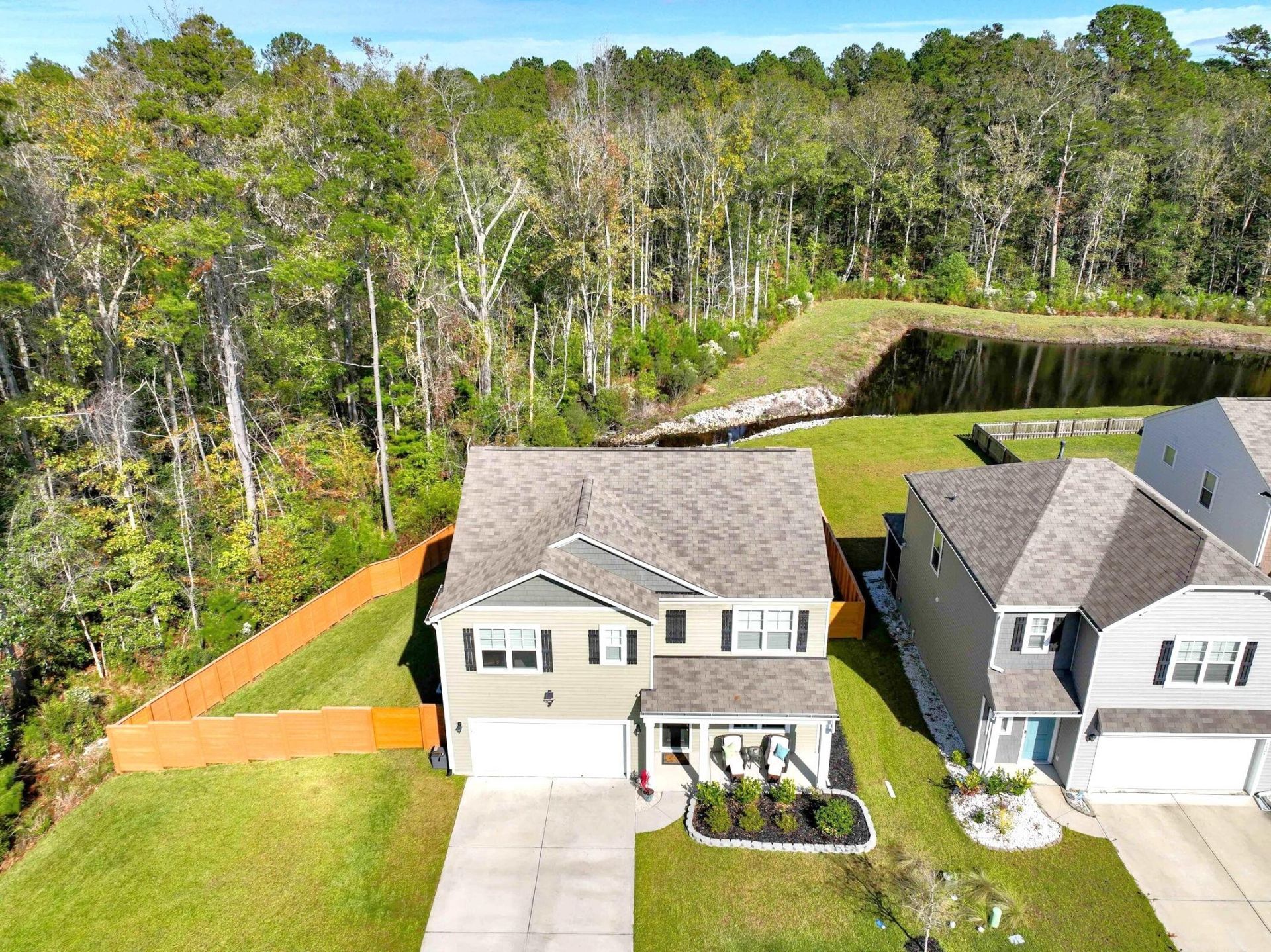 Perfectly situated on one of the largest lots in the McKewn Subdivision, 9826 Sickle Drive offers stunning pond views from both the front and back, bordering woods on a quiet cul-de-sac.This immaculately maintained, move-in-ready home features luxury vinyl flooring throughout the main level. The foyer opens to a versatile dining or flex space, leading into an open family room and a chef's kitchen complete with white cabinetry, granite countertops, stainless steel appliances, and an oversized island. The downstairs also includes a guest bedroom and full bathroom, ideal for an in-law suite or home office.Upstairs, the primary suite features a dual raised vanity, a walk-in shower, and ample closet space.You will also find three additional bedrooms, another full bathroom, a large laundry room, and a generous loft perfect for a second living area.The exterior is equally impressive. The oversized, private lot is a nature lover's dream, frequently visited by egrets, owls, and deer. Additionally, the McKewn community offers resort-style amenities, including a pool, play park, pickleball courts, a soccer field, and an outdoor kitchen.Conveniently located near Ladson Road, Dorchester Road, and Palmetto Commerce, this home won't last long.